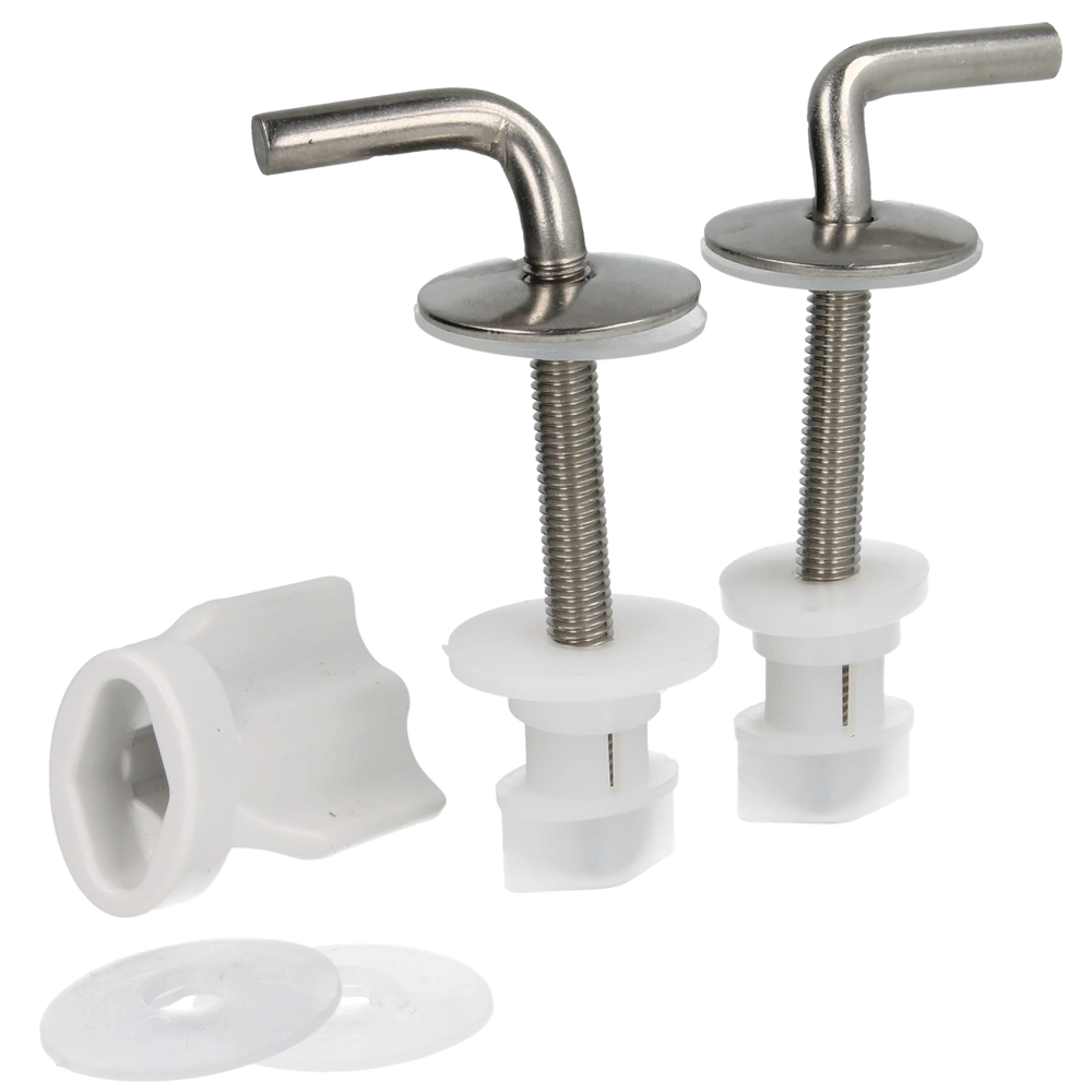 Universeel bruikbaar toiletbeugelscharnier van roestvrij staal met FastFix-systeem voor een wiebelvrije en krachtsluitende bevestiging.