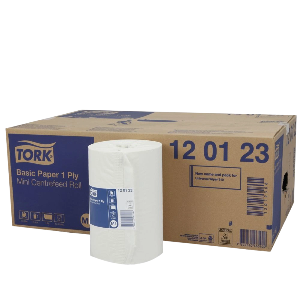 Alle productinformatieRol van 1-laags multifunctioneel papieren doeken voor eenvoudig afvegen en drogen van de handen. De rol is geschikt voor de Tork Mini centerfeed dispenser.