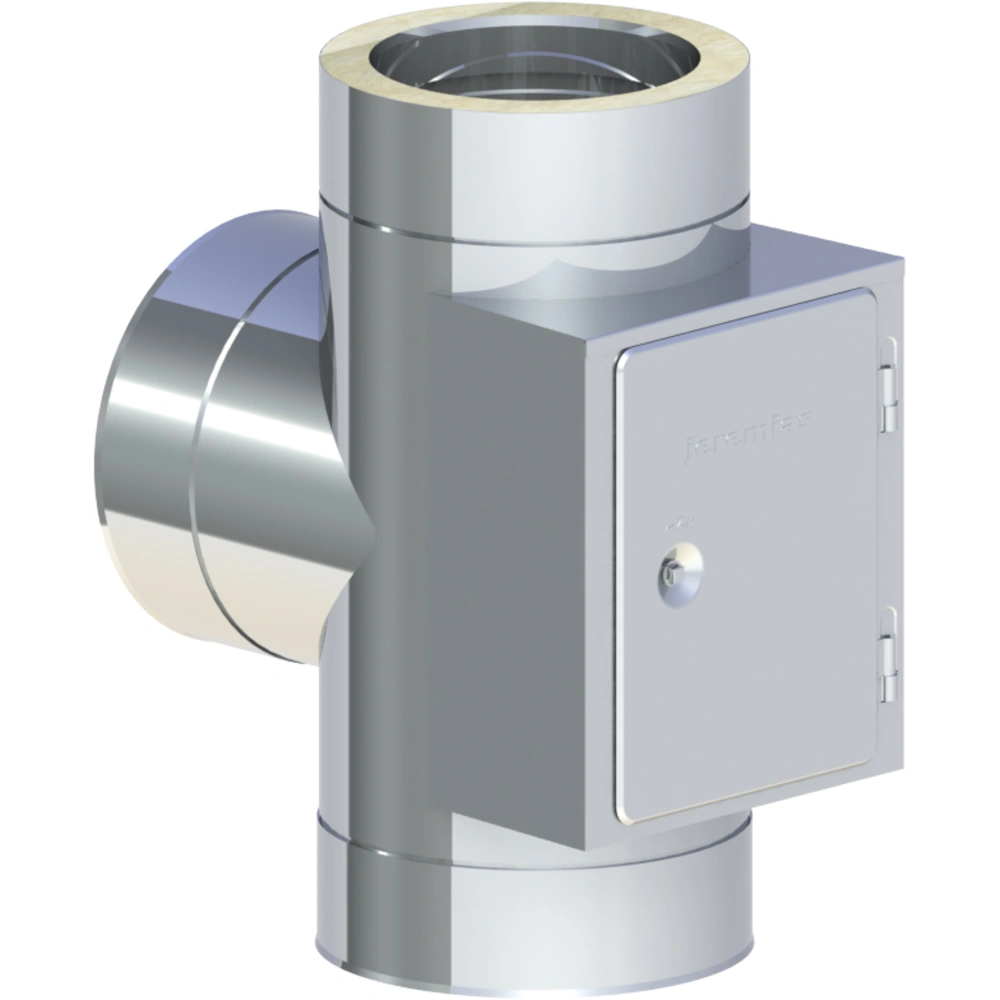 T-stuk met deur voor het aansluiten van meerdere rookgasbuizen
