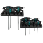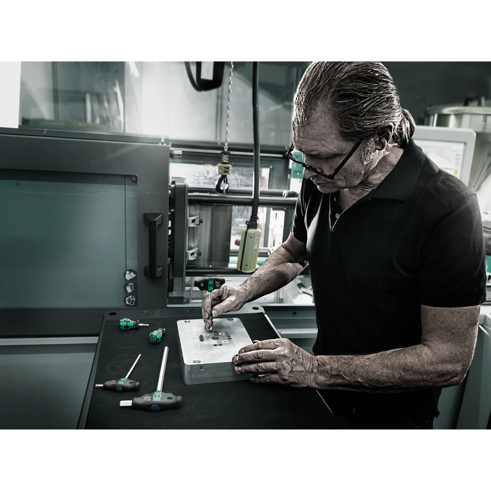 De T-greep schroevendraaiers met Hex-Plus systeem hebben een ergonomische handgreep met afrolbeveiliging, waardoor wrijving tussen hand en handgreep wordt voorkomen. Met de korte inbusprofielen op de handgreep kan een hoger koppel worden uitgeoefend. Alle schroevendraaiers met T-greep kunnen eenvoudig en snel in grootte worden onderscheiden door de kleurcode "Take it easy" en de schroeven worden stevig op het gereedschap vastgehouden dankzij de unieke vasthoudfunctie.