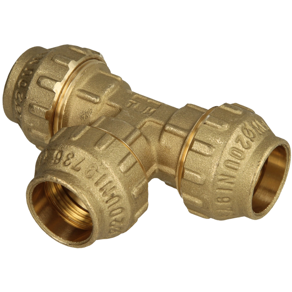 Messing knelfitting met messing knelring voor het aansluiten van PE leidingen in drinkwatertoepassingen.