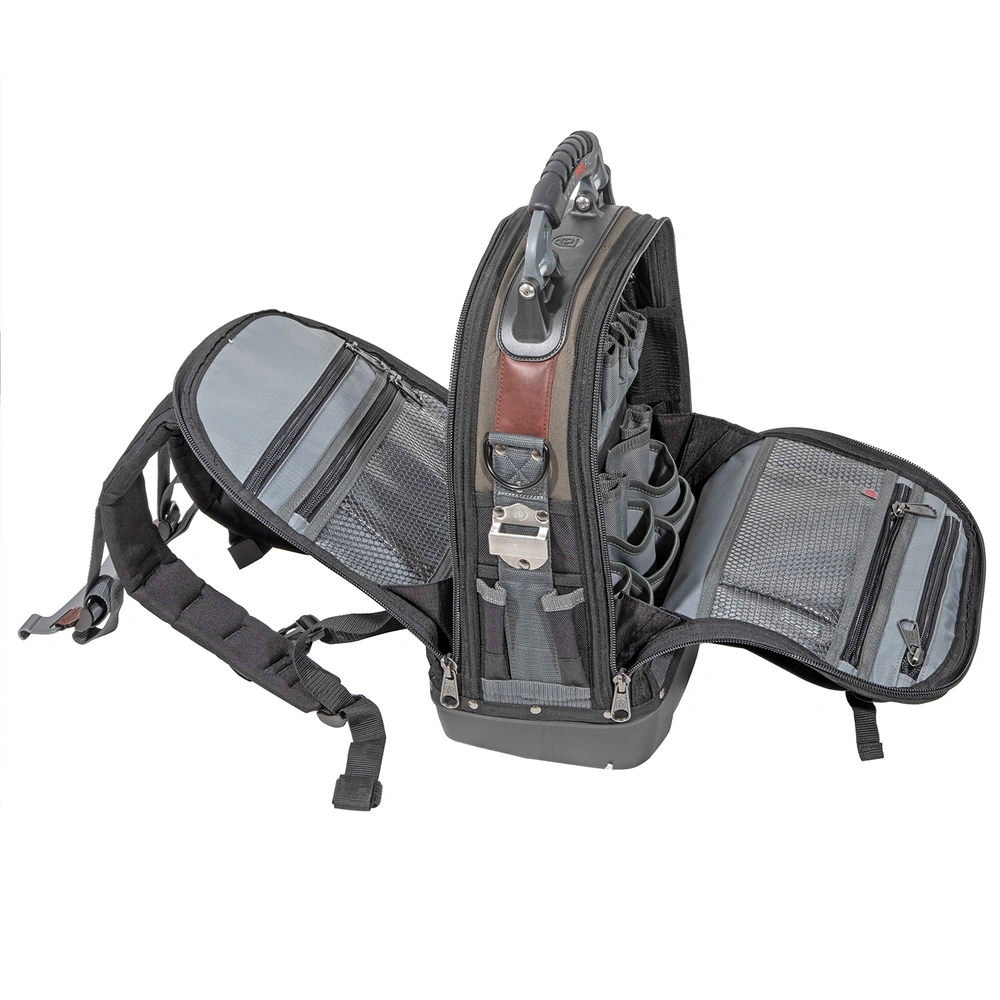 Extreem robuuste gereedschapsrugzak van scheurvast, waterafstotend nylonweefsel met waterdichte kunststof bodem. De rugzak biedt veel opbergruimte en veel binnen- en buitenvakken. Stevige ogen met riemen...