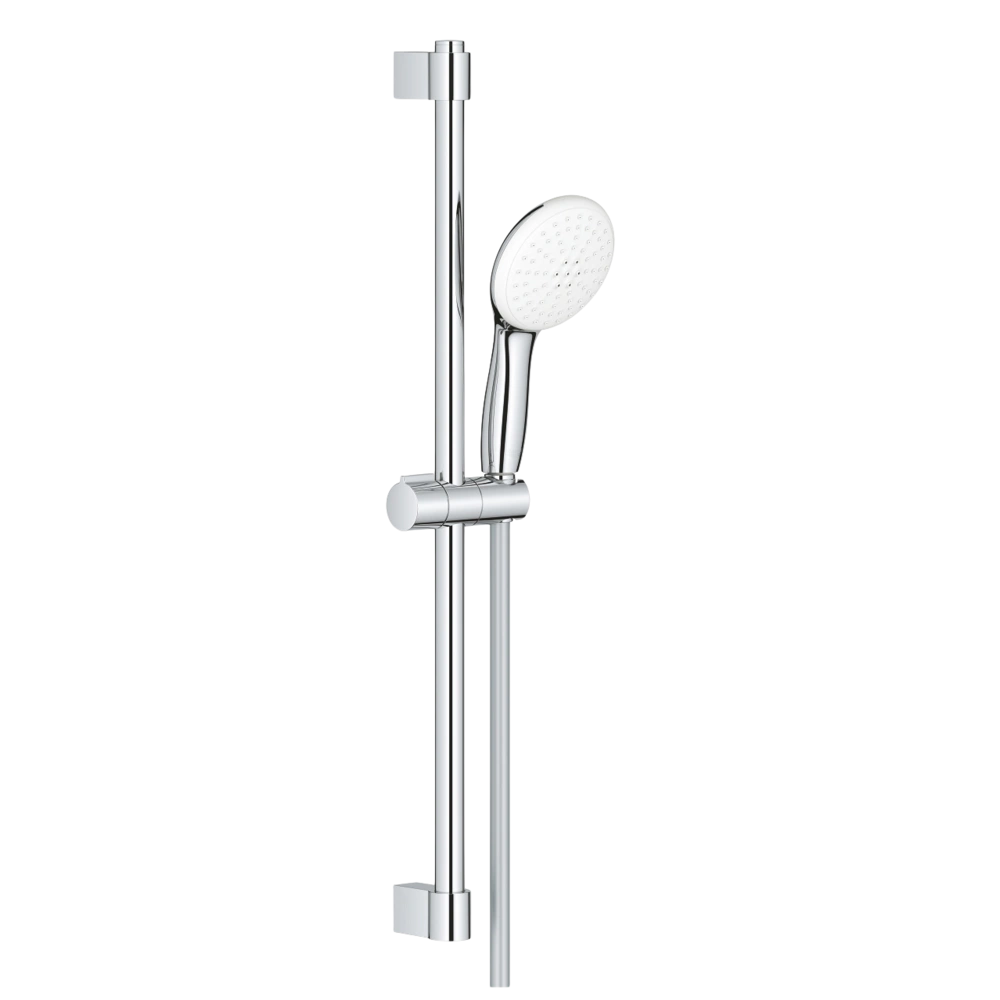 Alle productinformatie LeveringDouchegarnituur met twee verschillende straalsoorten en ronde douchekop. De siliconen ring rondom beschermt de handdouche betrouwbaar tegen beschadiging als hij valt. Het oppervlak van de fitting is bestand tegen krassen en kan eenvoudig worden gereinigd om kalkaanslag te verwijderen. De douchestang kan variabel worden aangepast aan de bestaande boorgaten.