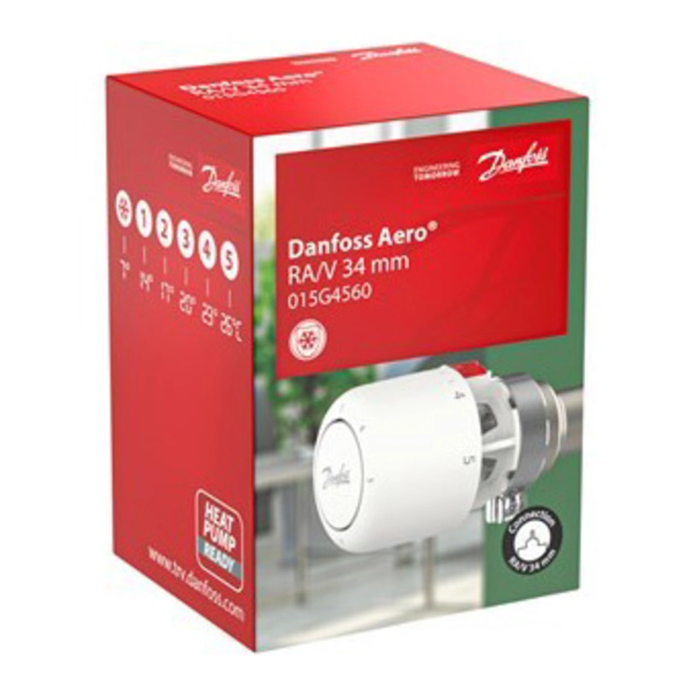 Thermostaatkop met ingebouwde sensor voor RAV-behuizing met een klephals van 34 mm. Het beschikt over een vorstbeveiligingsfunctie en kan worden begrensd en geblokkeerd.