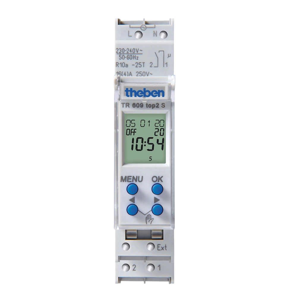Alle productinformatieDigitale tijdschakelaar met weekprogramma en één kanaal voor het automatisch schakelen van elektrische apparaten zoals verwarming en verlichting. De timer biedt uitgebreide programmeermogelijkheden (aan/uit, puls- en cyclusprogramma's), een extern drukknop- of schakelsignaal, willekeurige en vakantieprogramma's en een interface voor pc-programmering via een OBELISKtop2-geheugenkaart. Automatische omschakeling tussen zomer- en wintertijd is geïntegreerd.