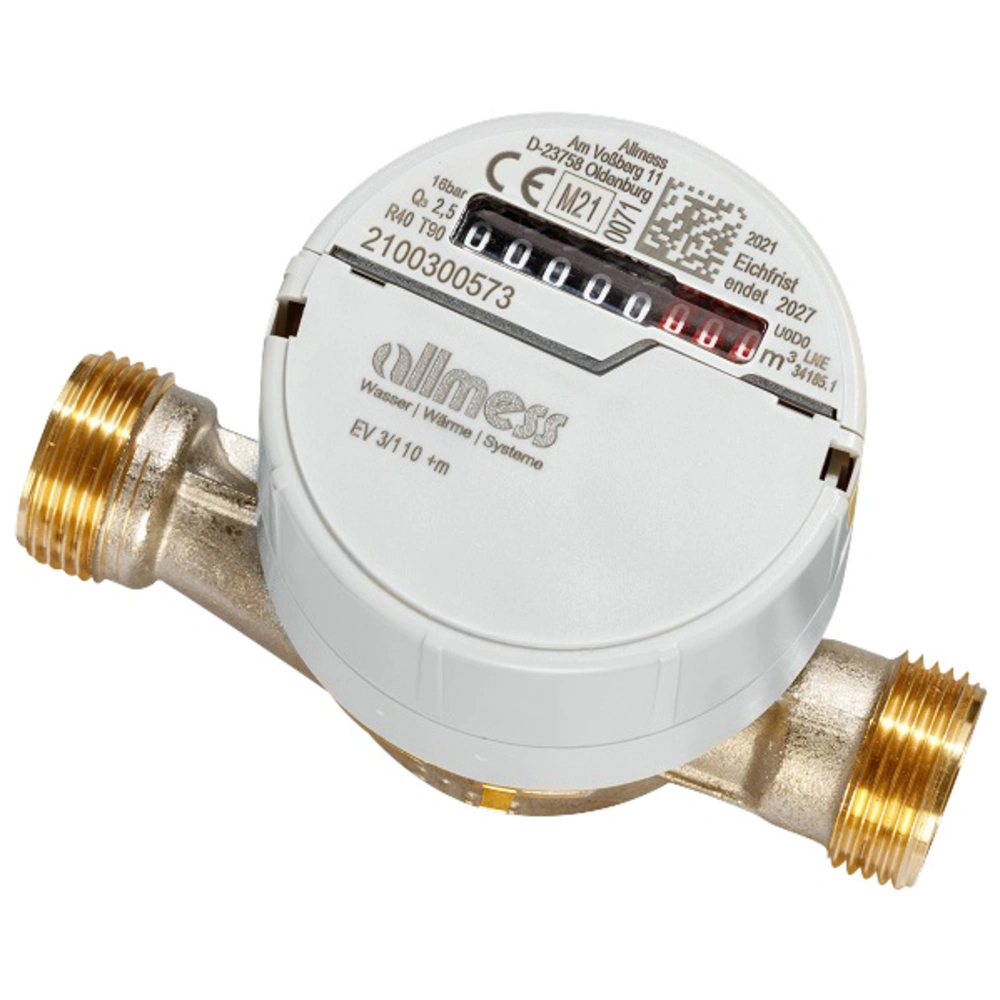 Universele schroefwatermeter voor horizontale of verticale opbouwmontage. De volledig drooglopende meter is uitgerust met een magnetische koppeling en een rolteller die 360° kan worden gedraaid. Hij is draadloos geschikt en voorbereid voor een communicatiemodule.