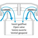 Als de luchttoevoerklep in de persleiding is geïnstalleerd, gaat het membraan open zodra er een vacuüm ontstaat. Door de frisse lucht die in de afvoerleiding stroomt, wordt de negatieve druk gelijk gemaakt, voordat het water uit de sifon wordt gezogen. De klep is absoluut dicht in de tegenovergestelde richting. De luchttoevoerklep moet verticaal op de afvalwaterleiding worden gemonteerd. Het kan worden geïnstalleerd in een verlaagd plafond, op zolder, onder de wastafel of in een geventileerd wandpaneelelement.