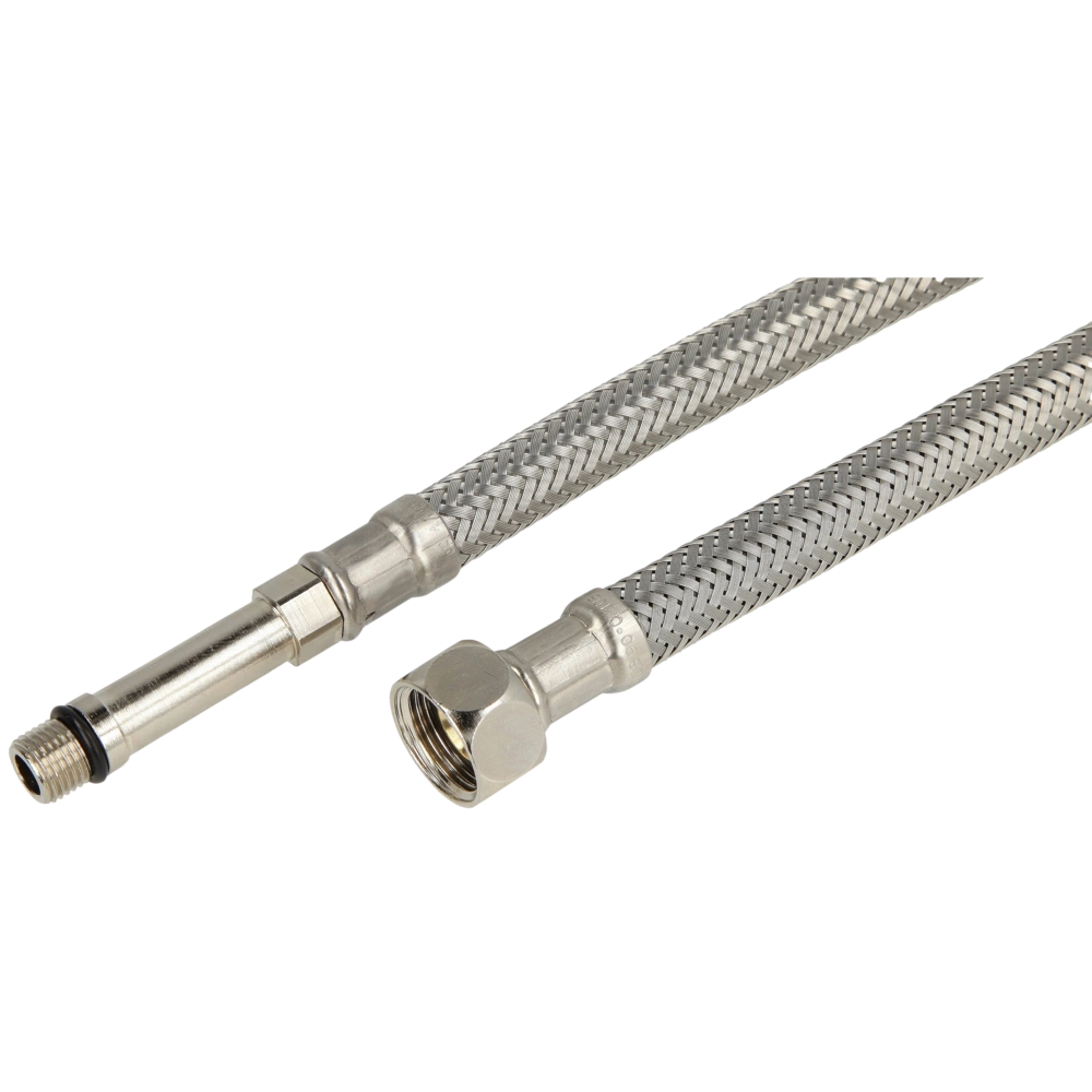 Aansluitslang met hygiënische kunststof kern en duurzame RVS mantel voor sanitaire- en drinkwatertoepassingen.