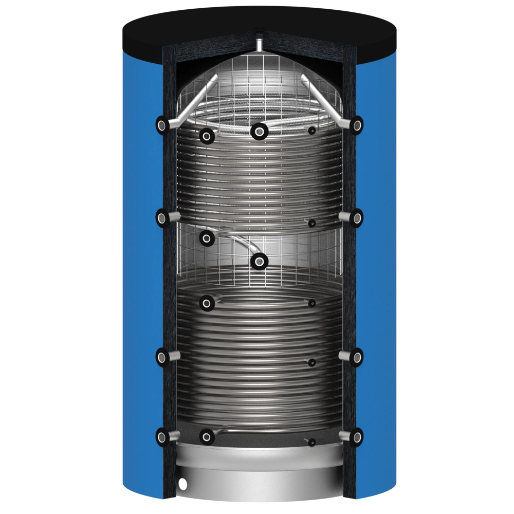 Verswaterboiler 500 l met 2 buiswarmtewisselaarsVerswaterboiler 500 l met 2 buiswarmtewisselaars