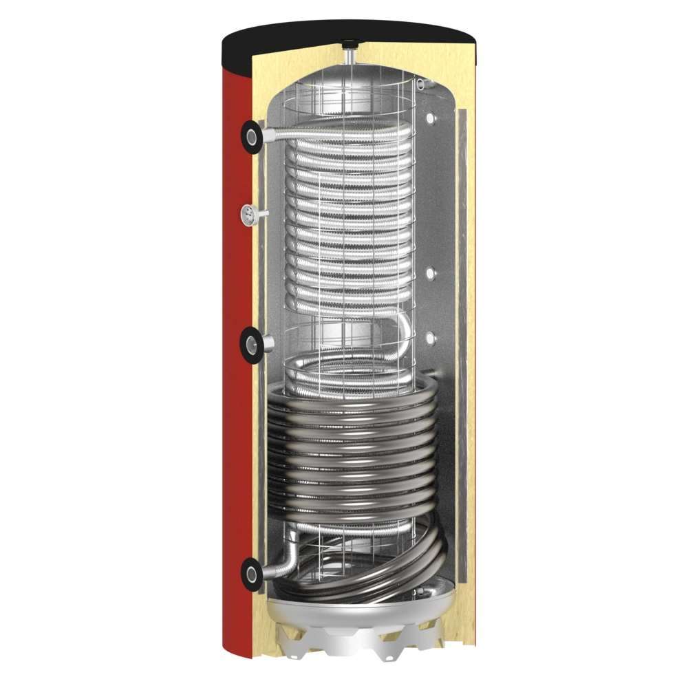 Dankzij de extra gladde buiswarmtewisselaar kan op elk moment een warmtebron worden geïntegreerd en kan de energie daarvan aan de verswateropslagtank worden toegevoegd.