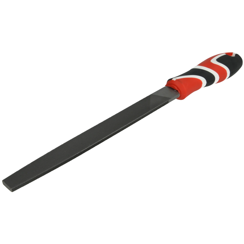 Platte vijl van speciaal staal met antislip, ergonomische 2-componenten handgreep.