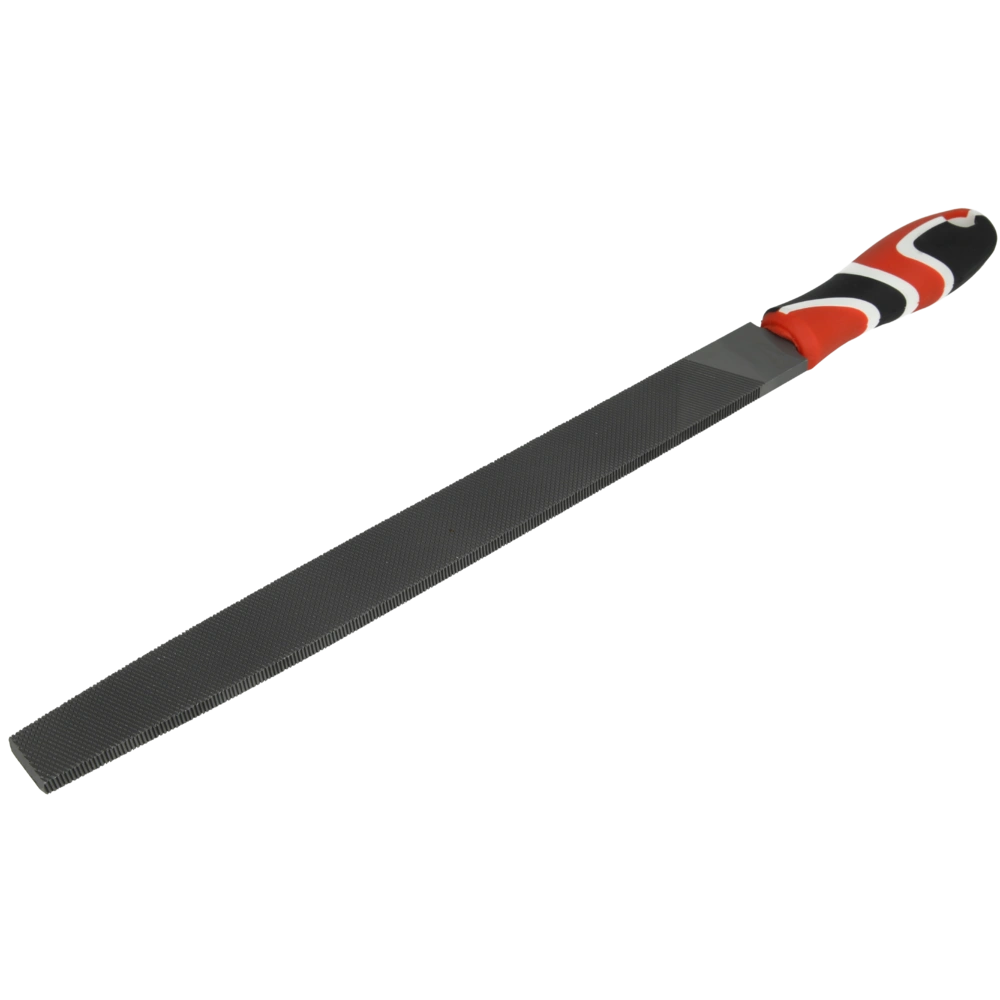 Platte vijl van speciaal staal met antislip, ergonomische 2-componenten handgreep.