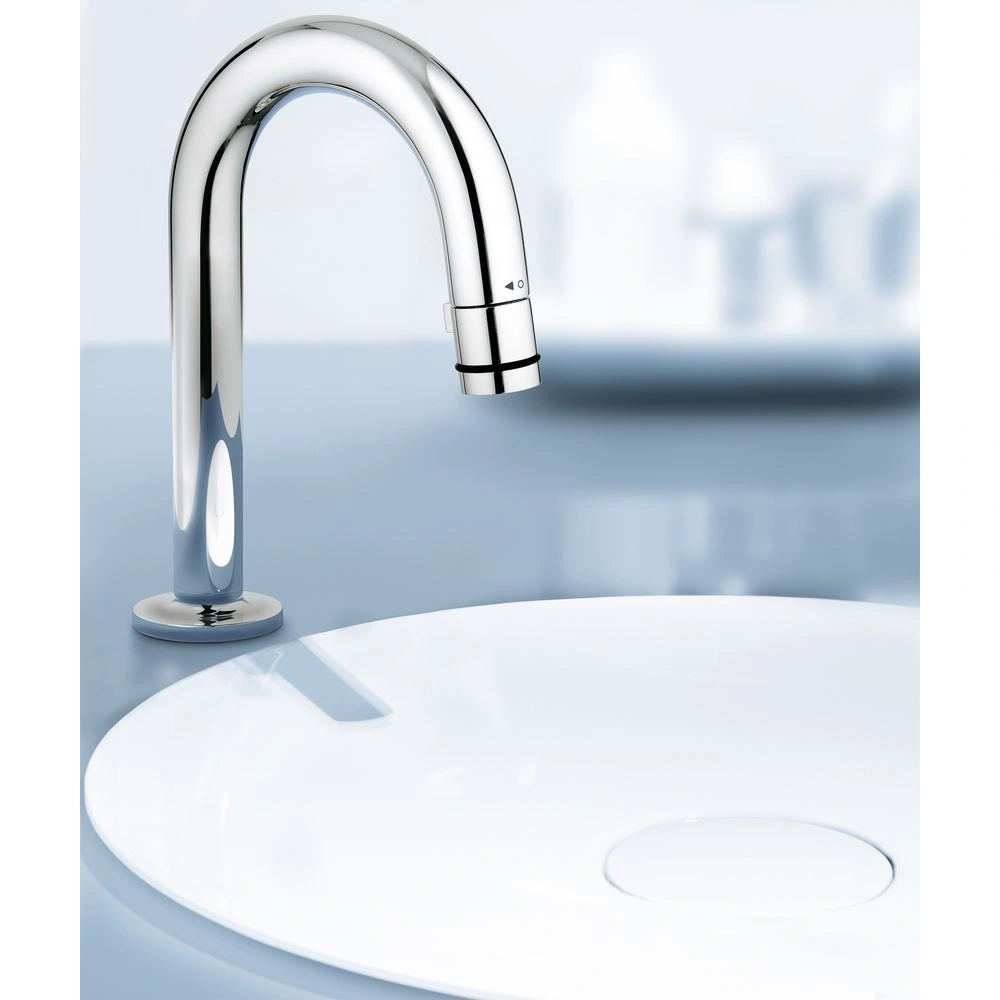 De Grohe universele wastafelkraan DN15 met L-uitloop is voorzien van een mousseur met start/stop-functie en de GROHE StarLight® chroom afwerking. De doorstroomhoeveelheid is 6 l/min, bij 3 bar waterdruk