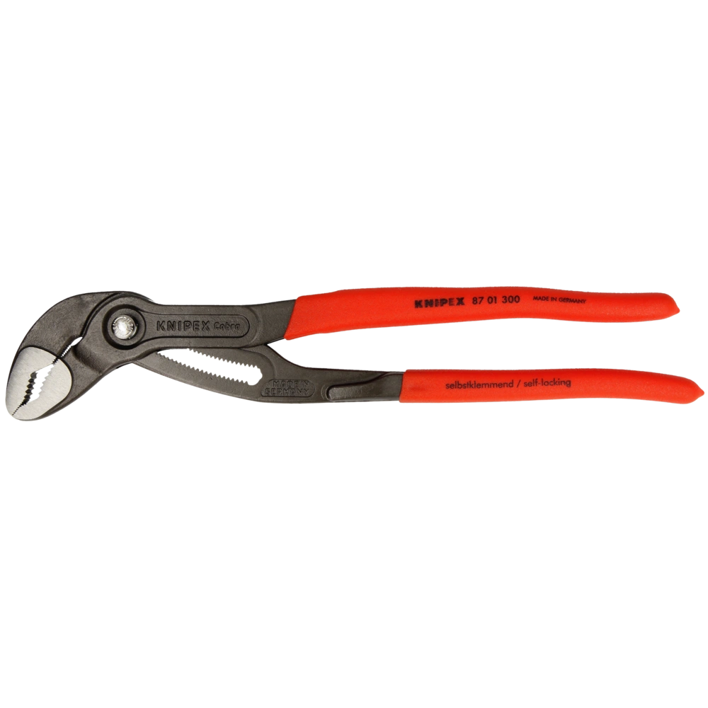 De waterpomptang is een grijptang met verstelbare schuifverbinding. Een snelle en nauwkeurige openingsbreedte is direct op het werkstuk mogelijk. Het is zelfklemmend, waardoor uitglijden op buizen wordt voorkomen. Een klembeveiliging voorkomt letsel.