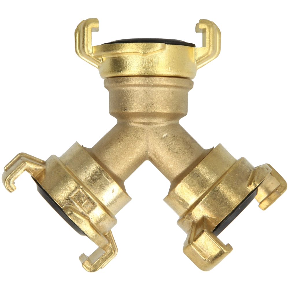 De Y-verdeler met aansluiting voor drie snelkoppelingen is gemaakt van messing. De afdichtingen zijn gemaakt van rubber. Het is geschikt voor alle messing snelkoppelingen met een nokbreedte van 40 mm.