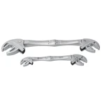 Zelfstellende dubbele moersleutel met ratelmechanisme voor efficiënt schroeven.