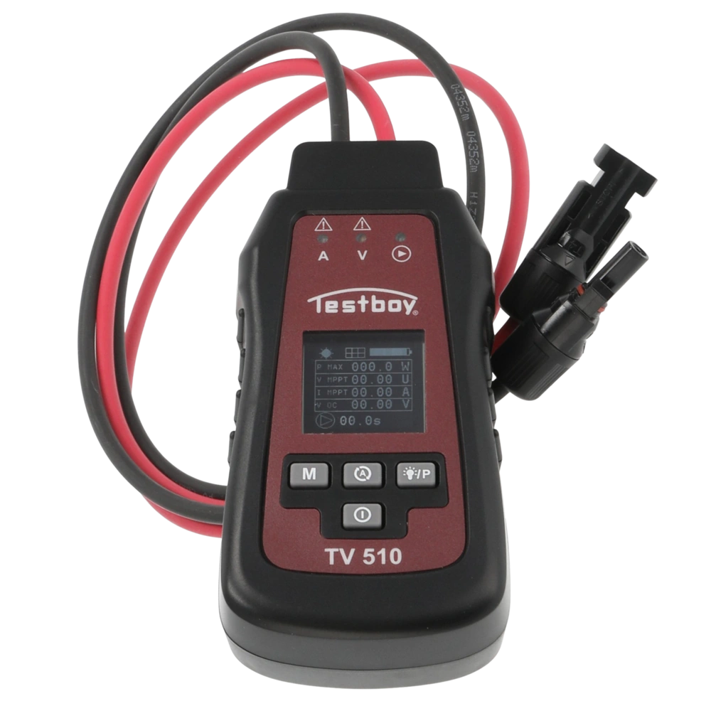Precisie-instrument voor het controleren van zonnepanelen en het meten van het geleverde vermogen. De multimeter voor zonnepanelen meet het maximale vermogenspunt en de open-circuit spanning en biedt meervoudige bescherming tegen overspanning, overtemperatuur, overstroom en te hoog vermogen. Hierdoor kunnen individuele zonnepanelen snel en eenvoudig worden getest voordat ze worden geïnstalleerd. Individuele metingen kunnen worden uitgevoerd in handmatige modus en continu terugkerende metingen in automatische modus.