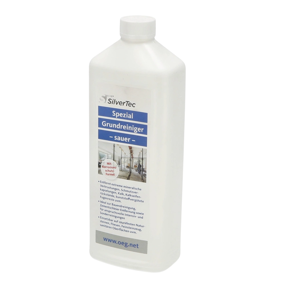 Krachtig concentraat voor de eindschoonmaak van gebouwen. Het zeer effectieve middel verwijdert cementresten, beton- en mortelresten, kalkaanslag, salpeter, ketelsteen, bruinsteen en urineaanslag, evenals voeg- en lijmresten. De reiniger kan gebruikt worden voor tegels, zuurbestendige oppervlakken en natuursteen.