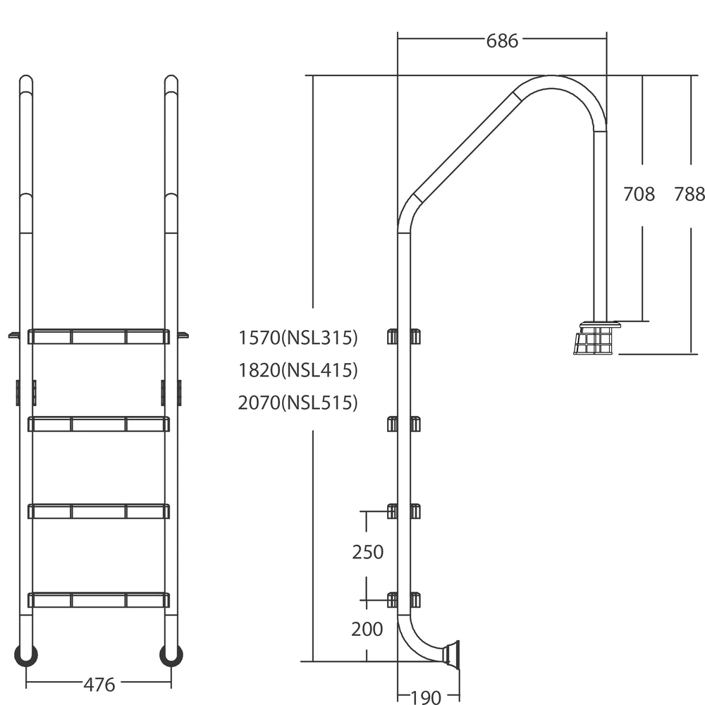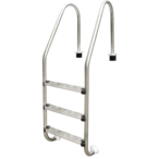 Alle productinformatieInstapladder voor zwembaden. Brede uitvoering met bevestigingspunten voor de leuning op een afstand van 496 mm van de zwembadrand. Voor een betere grip bij het opstappen zijn de treden voorzien van anti-slip pads.